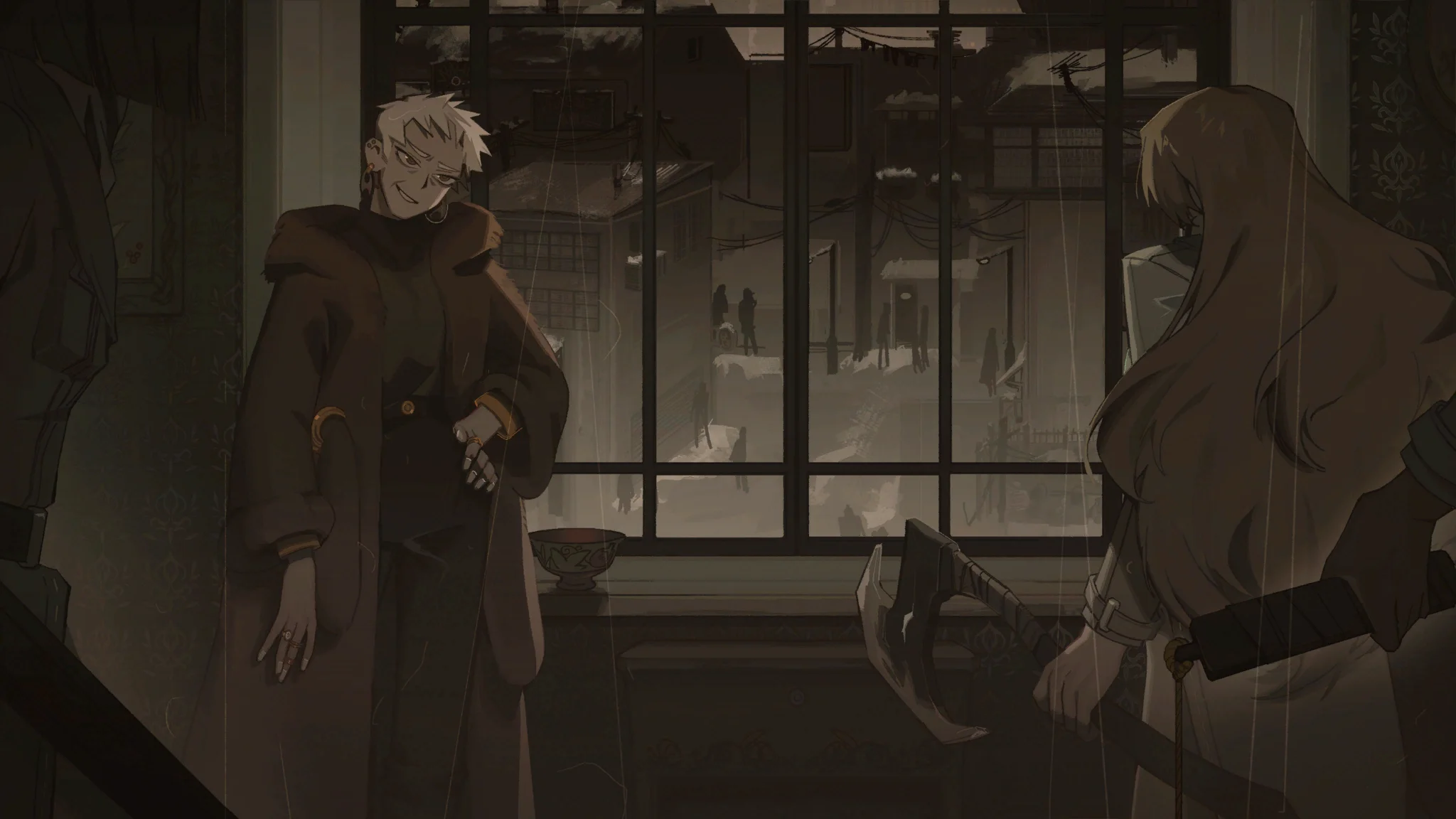 얼음처럼 투명한 머리카락을 가진 자가 우리를 기다리고 있었다.